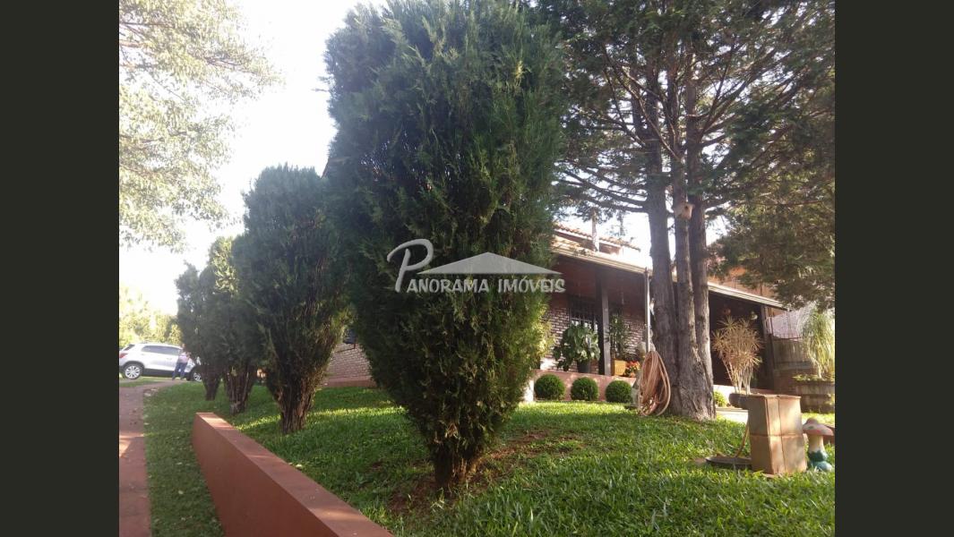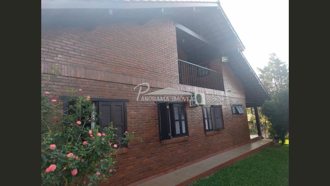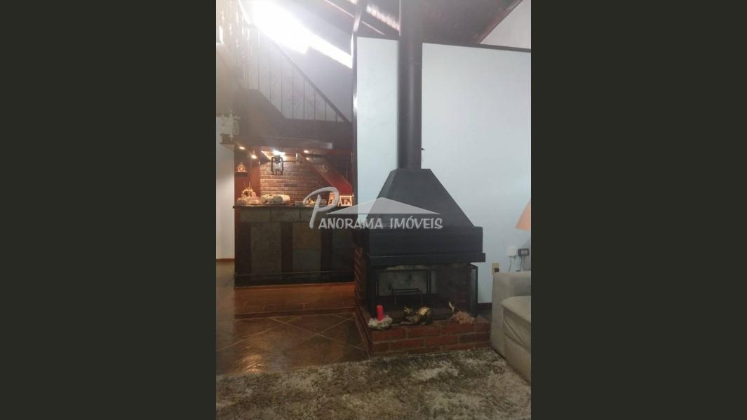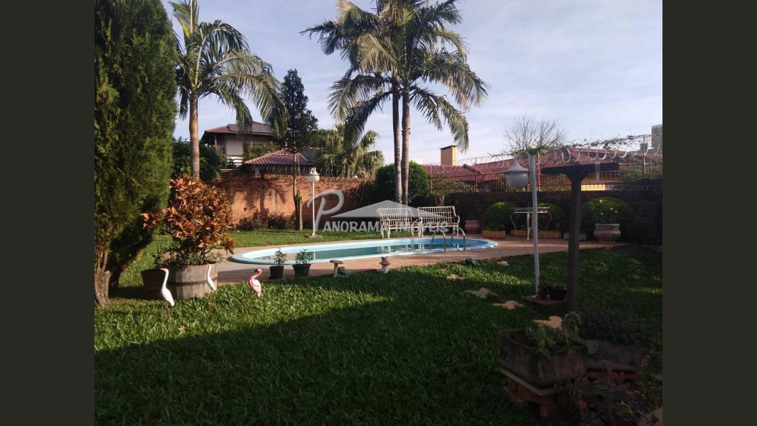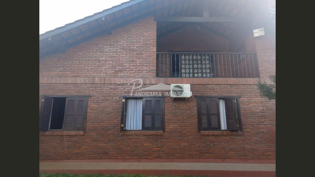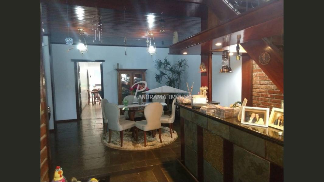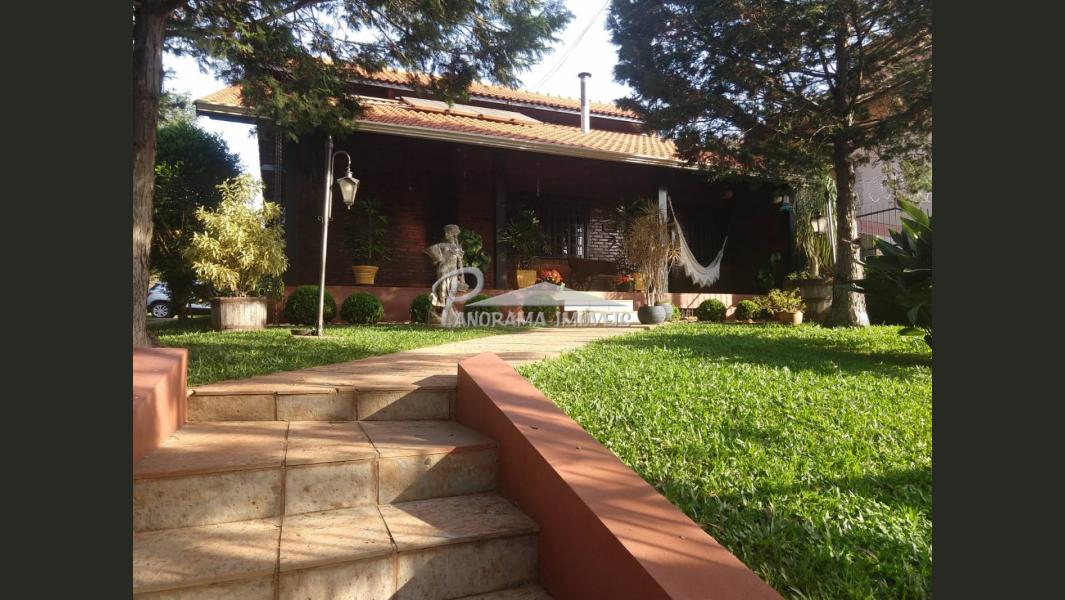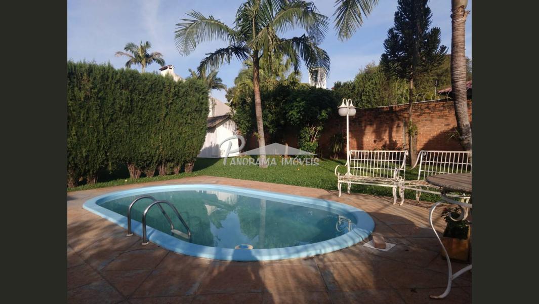 Linda Casa de 2 níveis com ampla área na frente com suíte mais 2 dormitórios, sala de estar com lareira, sala social, banheiro social, cozinha, área de serviço, adega, área de festas com churrasqueira e garagem, piscina com aquecimento solar, terreno grande todo murado;