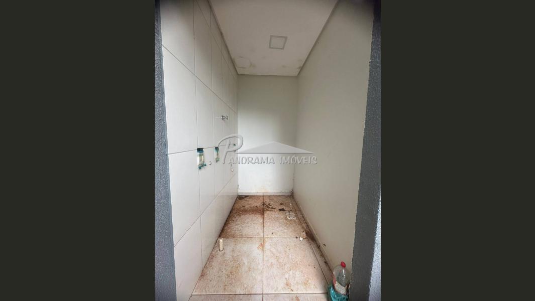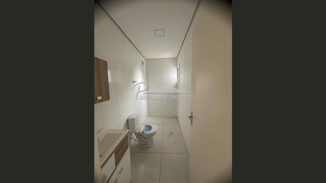 Casa geminada com dois dormitórios, sala, cozinha, banheiro, lavanderia.