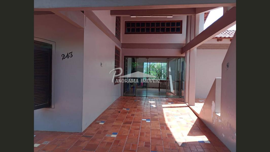 Casa com suite mais dois dormitorios, sala com lareira, sala de jantar, cozinha, banheiro social, escritorio, garagem, piscina, patio grande.