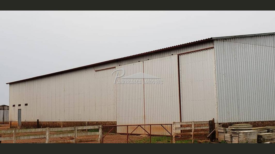 Galpão coberto para confinamento de gado.
